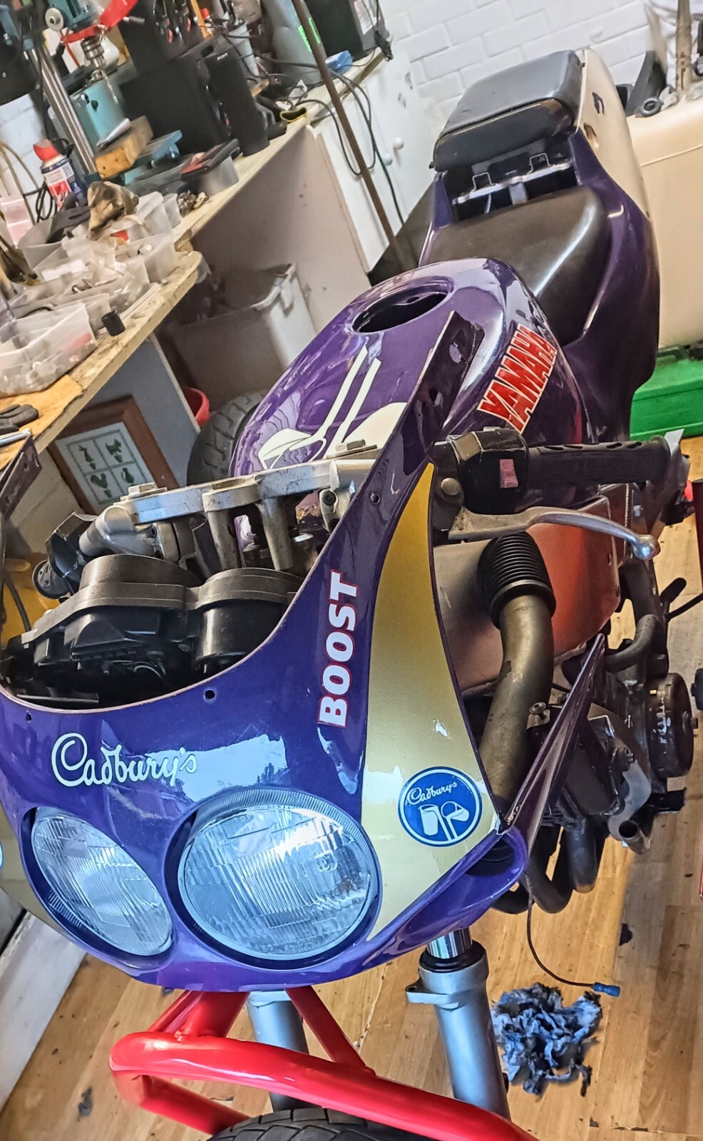 I think it offers a sound foundation for a restoration or modified project. I intention was to modify the bike making it into a bikini fared road bike…..those that know know that it is very easy to transplant a FZR600 engine into the frame which could make it an even faster lightweight bike.